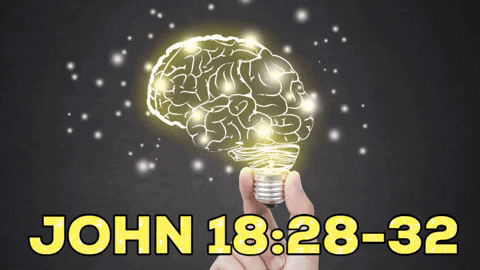 The text in the image refers to John 18:28-32, which describes part of the trial of Jesus before Pontius Pilate. Here’s a brief summary of these verses: