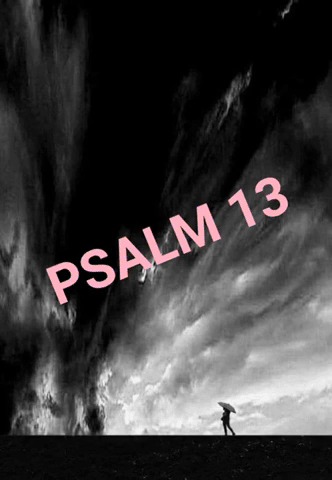 The image shows “PSALM 13” in multi-color text overlaid on a dramatic black and white photograph featuring a silhouetted figure against a stormy or dramatic sky.